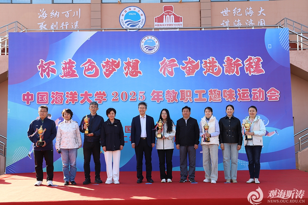 为深入学习贯彻落实习近平总书记给全体师生重要回信精神,庆祝建校101周年,丰富教职工文体生活,促进教职工全面发展,凝聚教职工拼搏奋斗力量,近日,中国海洋大学2025年“怀蓝色梦想 行奋进新程”教职工趣味运动会在崂山校区、鱼山校区、西海岸校区举办。学校党委书记李明,党委副书记卢光志,党委常委、副校长范其伟,党委常委、党委组织部部长蒋秋飚,党委常委、统战部长陈鷟出席运动会开、闭幕式,并为获奖代表队颁奖。 党委副书记卢光志在开幕式上致辞。他指出,一年一度的教职工趣味运动会是学校工会以提升教职工身体素质、凝聚干事创业力量为目标,深化教职工文化体育建设,创新打造的工会活动品牌,既是对教职工参与体育运动强健体魄的一次大检阅,也是全校教职工精神风貌的一次集中展示。希望参赛教职工团结协作,奋力拼搏,尽情享受运动带来的快乐。同时希望广大教职工以趣味运动会为契机,加强锻炼,增强体质,以更加饱满的热情、更加强健的体魄、更加昂扬的斗志砥砺奋进、矢志蔚蓝,为学校高质量发展贡献力量。