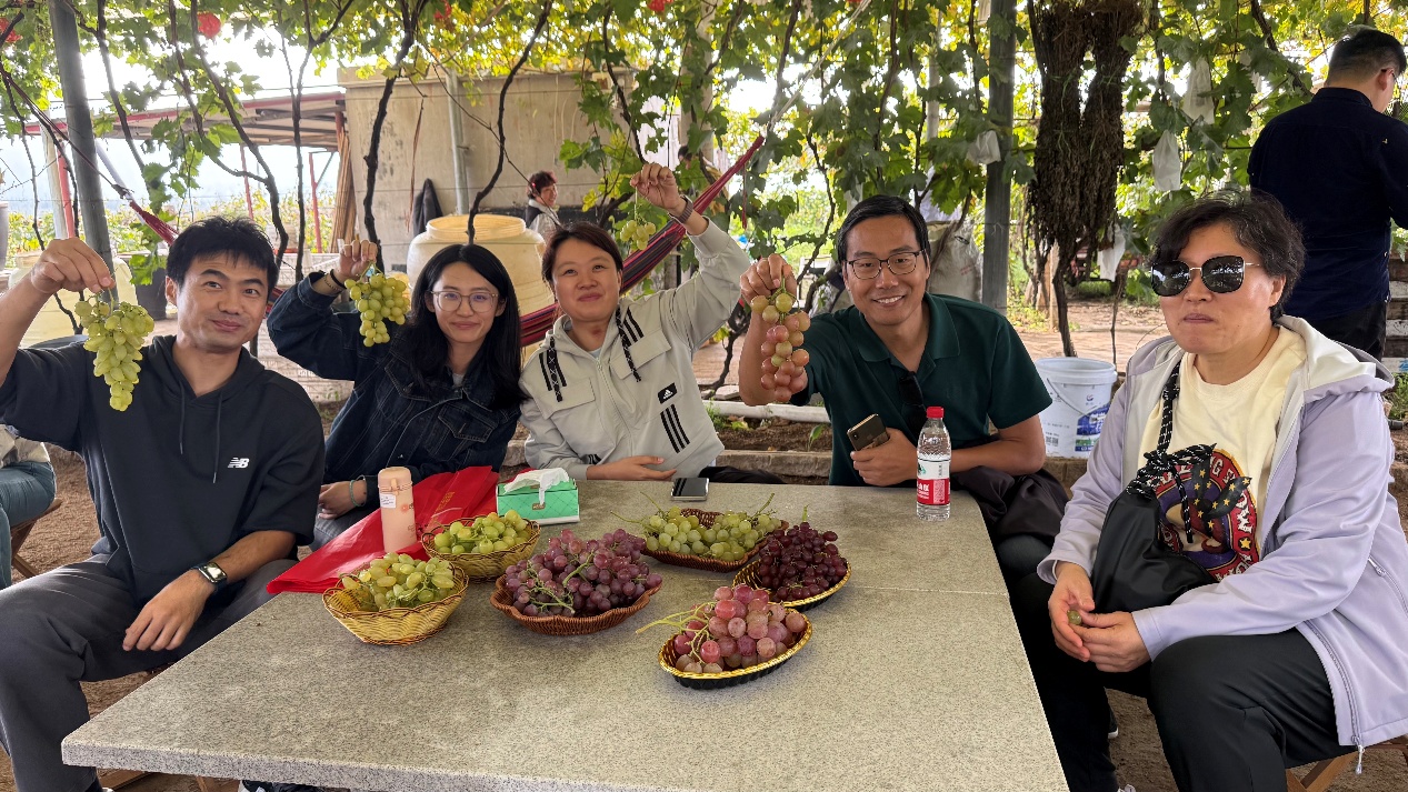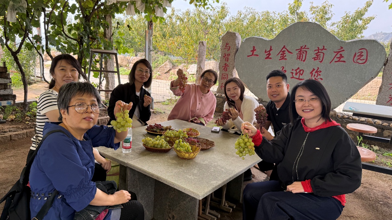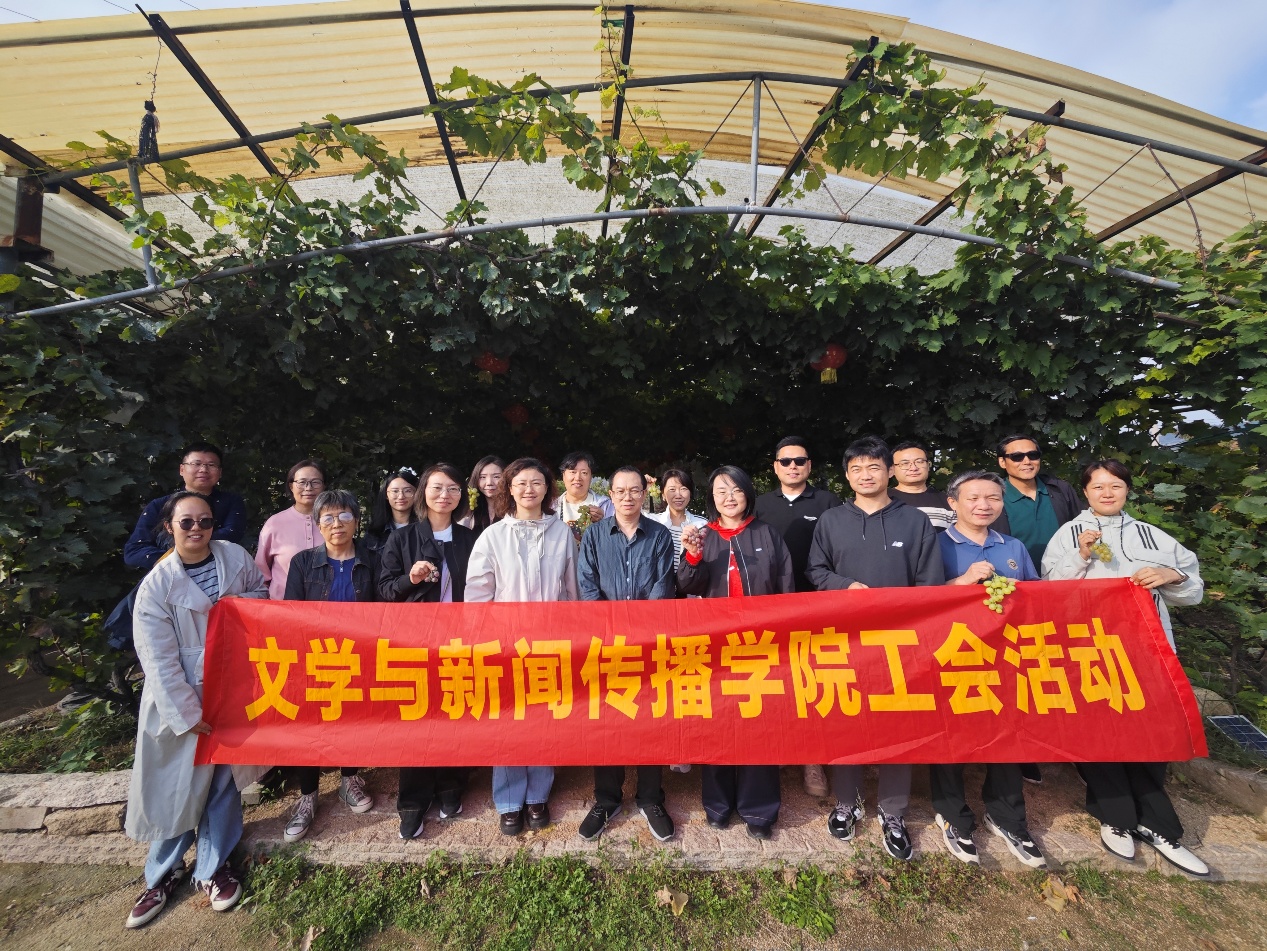 山美水秀品葡香 凝心聚力促发展 ——文学与新闻传播学院秋季葡萄采摘活动圆满举行 为丰富教职工业余文化生活,增进彼此间的沟通交流,进一步提升学院的凝聚力和向心力,10月16日,学院工会精心组织教职工前往素有“中国葡萄之乡”美誉的平度大泽山,开展了一场别开生面的秋季葡萄采摘活动。