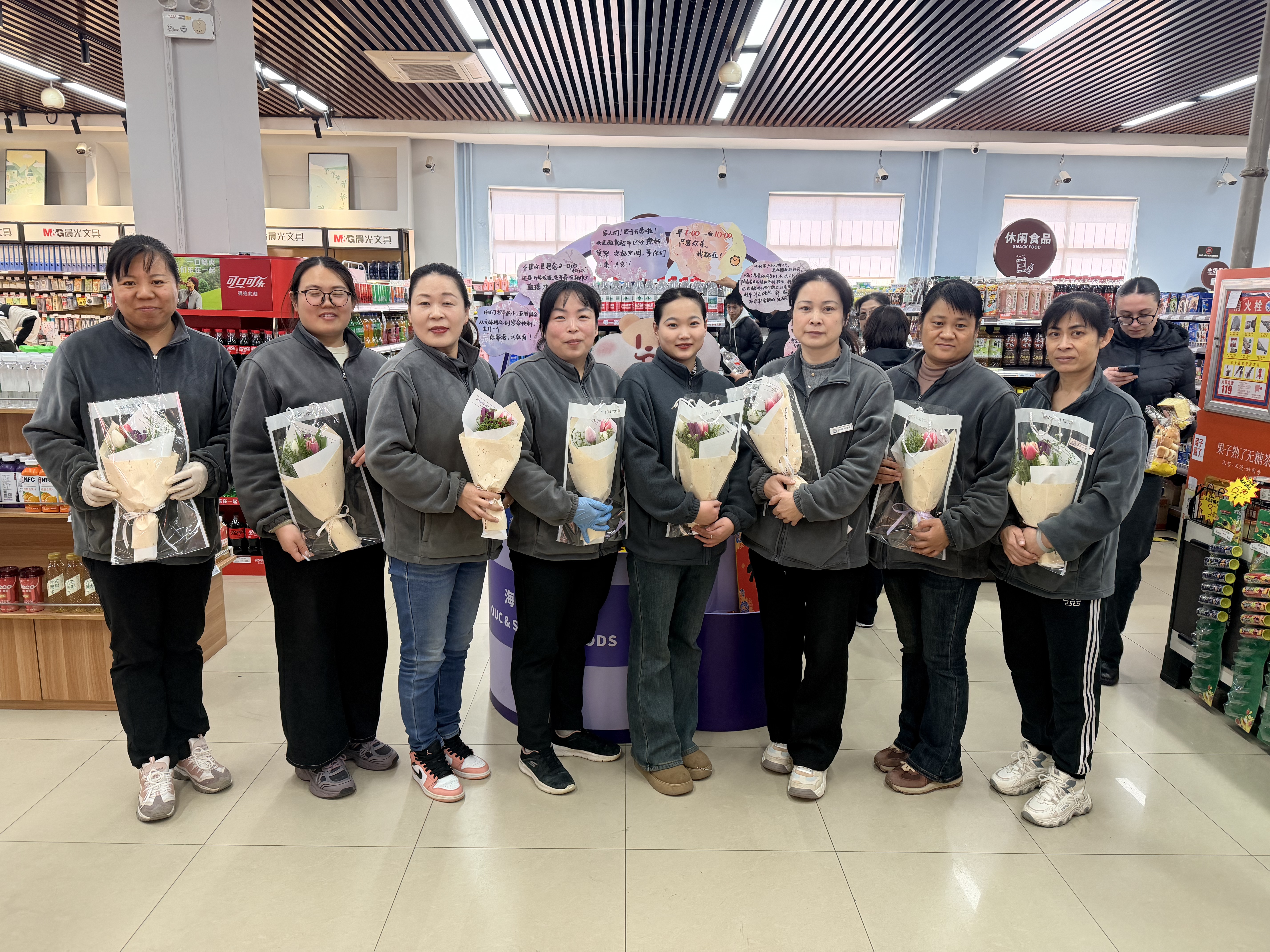 此次“宋锦福禄”主题活动,不仅让女职工们在紧张忙碌的工作之余卸下疲惫、静心休憩,沉浸式体验了非遗手工的乐趣与中华传统文化的独特魅力,更以手工为媒、以文化为桥,进一步凝聚了后勤女职工队伍的向心力与凝聚力,传递了组织的温暖关怀。 另外,在“三八”国际妇女节当天,后勤还为每一位女职工精心准备了鲜花,传递节日的关怀与敬意,切实营造出尊重女职工、关爱女职工、致敬女职工的浓厚节日氛围,让每一位后勤女职工都能感受到集体的温暖与节日的喜悦。